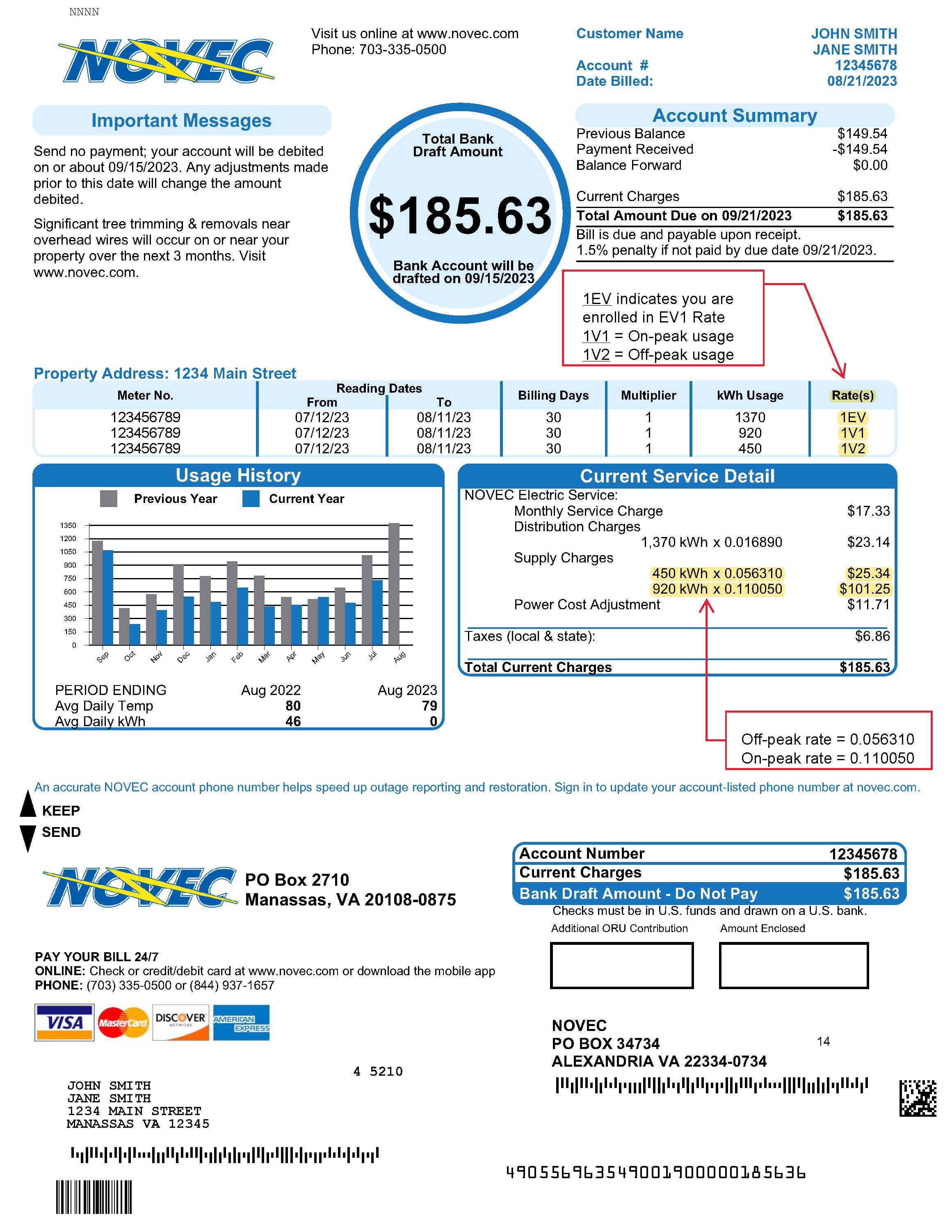 Click here for an example of a NOVEC customer’s bill using the EV-1 rate.